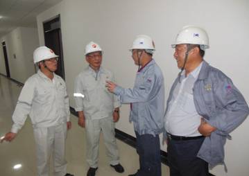 7月17日上午,中煤蒙大項目總包方廣東寰球董事長王偉、現場項目經理金柏祥,公司總經理胡流芳,在項目經理欒立超等陪同下,對華北分公司所承建的四個單體、全廠管廊進行檢查指導。