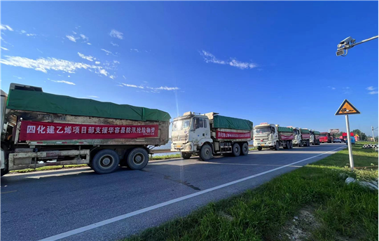為積極響應習近平總書記的重要指示精神,公司聞令而動,緊急組建防汛搶險突擊隊,運送搶險物料前往決堤處支援。6日凌晨,公司岳陽乙烯項目部調配土方車輛30余輛,裝滿塊石星夜出發前往現場支援。到7月8日22時,公司累計發送塊石資源990車,指揮人員及駕駛員549人,動用各類機械526輛,運輸3.465萬噸塊石前往決堤現場,為8日22時33分成功將決口封堵貢獻了力量。